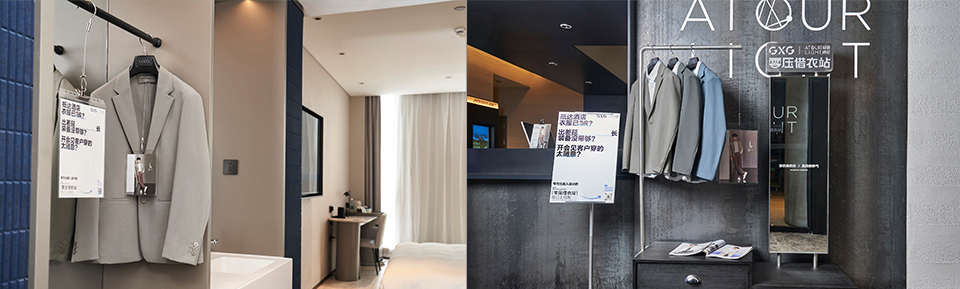 零压⻄装系列⼊驻亚朵酒店,联⼿亚朵品牌合⼒打造出圈事件,围绕轻量舒适易打理为西装减重,精准触达商务⼈群,让商旅人士通勤更加轻盈⾃如,推进零压系列破圈。